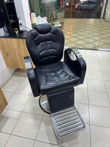 Bərbər/kosmetoloji salon üçün peşəkar kreslolar - Material: qara rəngli, hamar və təmizlənməsi asan süni dəridən oturacaq və arxalıq - Konstruksiya: möhkəm metal baza, geniş yuvarlaq diblik; sabit...