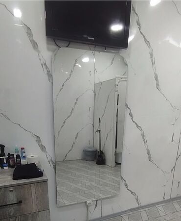 - Güzgülər və TV divara bərkidilmiş vəziyyətdə görünür.