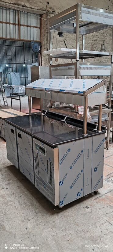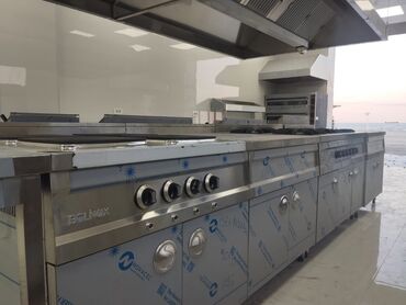 Peşəkar restoran və ictimai iaşə mətbəxi üçün paslanmayan poladdan istehsal olunmuş avadanlıq və mətbəx mebeli Təsvir: - Paslanmayan polad iş masaları: künc və düz modellər, bordürlü iş səthi, alt...