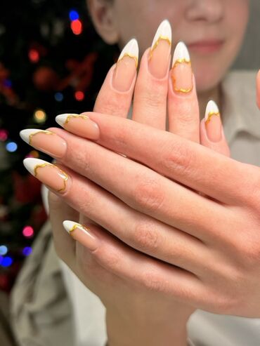 - Fransız manikürü: ağ, mavi və digər çalarlarla, həmçinin konturlu və “kintsugi” effekti olan qızılı xəttlərlə