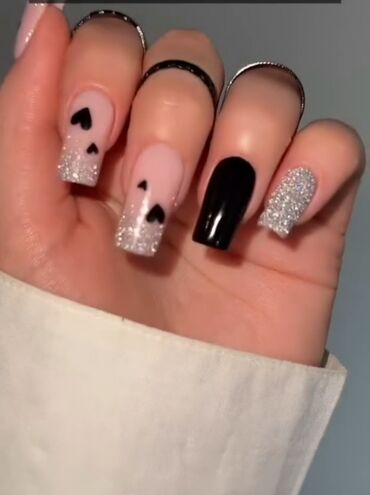 Xidmət: Dırnaq qaynağı + pedikür paketi - Peşəkar manikür/dizayn: badam formalı dırnaqlar, fransız üslubu, qara-nüanslı naxışlar, glitter və ombre effektləri daxil olmaqla müxtəlif dizaynlar - Ped...