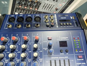 - 4 mono kanal: hər kanalda MIC (XLR) və LINE girişləri, TRIM, 3 zolaqlı EQ (HI/MID/LOW), PAN, SEND/EFFECT və PFL düymələri