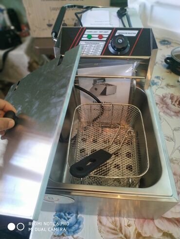 - Elektrik fritöz: paslanmayan poladdan kasa, çıxarılan səbət və qapaq, temperatur seçimi düyməsi, işıq indikatorları. Kartof fri, qanad, qəlyanaltılar üçün.