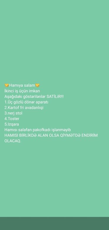 - Kafe, fast-food, küçə satışı və katerinq üçün praktik komplekt.