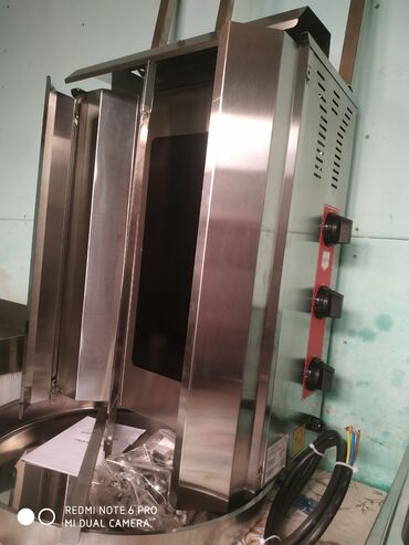 - Şaurma/kebab üçün vertikal doner aparatı: paslanmayan polad gövdə, şiş üçün şaquli dayaqlar, damcı qabı, çoxpilləli idarəetmə paneli (yan paneldə üç düymə).