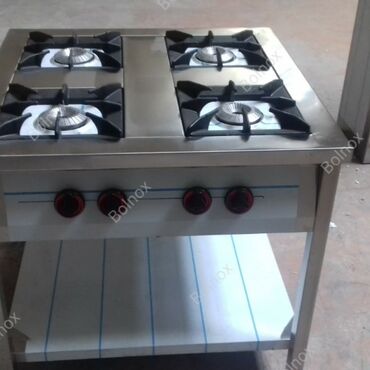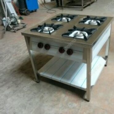 - 4 gözlü qazlı bişirmə paneli: Güclü dəmir ızgaralar, alov gücünü incə tənzimləmək üçün 4 ayrı idarəetmə düyməsi, istiliyədavamlı iş səthi. Aşağıda qab-qacaq və tava üçün geniş açıq rəf.