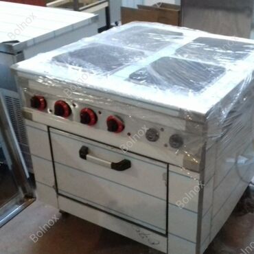 - 4 zonalı elektrik plitə və alt soba: Üst hissədə kvadrat qızdırıcı plitələr, ön paneldə temperatur və rejim üçün çevik düymələr; alt hissədə dərin soba bölməsi ilə eyni korpusda.