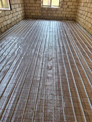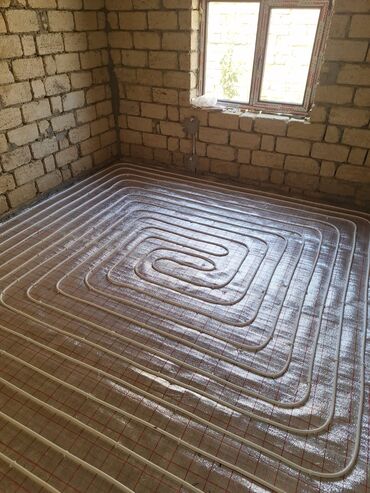 - “İsti döşəmə” (su əsaslı) sistemi: istilik izolyasiyası, armatur toru, konturların layihəyə uyğun döşənməsi (ilan və spiral sxemləri), kollektora birləşdirmə, sızma sınağı