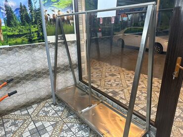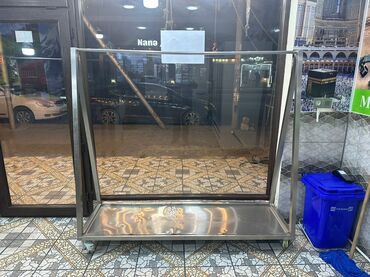 - Paslanmayan polad vitrin/şüşə sərgiləmə stendi: təkərli konstruksiya, geniş ön şüşə, asan təmizlənən dib hissə. Hazır məhsulların və ya xammalın gigiyenik nümayişi üçün.