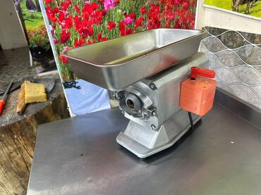 - Sənaye tipli ət çəkən maşın: alüminium/korpus, iri qidalandırıcı bunker, elektrikli idarəetmə bloku. Kıyma, kotlet, dönər/sosiska hazırlığı üçün uyğundur.