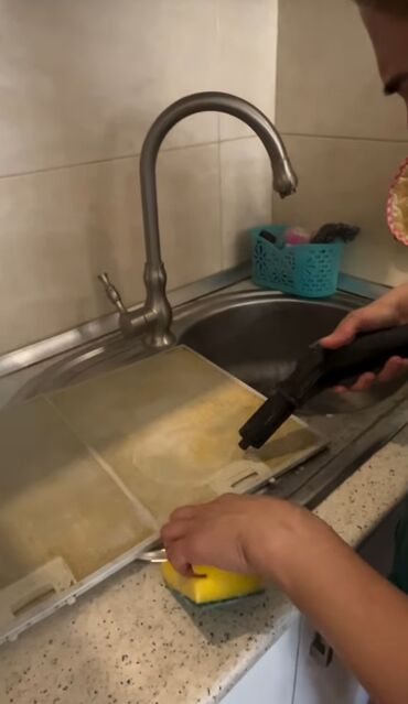 - Mətbəx və məişət texnikasının dərin təmizliyi: aspirator filtrlərinin sökülüb yağdan təmizlənməsi, santexnika və iş səthlərinin yuyulması.
