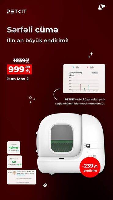 Petkit Pura Max 2 Brend: Petkit Model: Pura Max 2 Qum Tutumu: 5 Litr