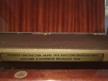 - Mükafat lövhəsi: “Patented Construction – Grand Prix: Barcelona, Bruxelles, Paris. Diplôme d’Honneur Bruxelles 1958” yazılı medal lövhəsi