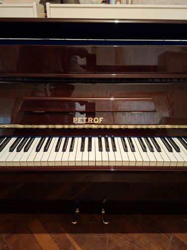 PETROF upright pianino - Marka/model: PETROF, akustik upright - Korpus: tünd qəhvəyi (maun tonlarında) yüksək parlaq lak örtük - Klaviatura: 88 düymə, klassik tam ölçü - Pedallar: 2 ədəd metal (qı...