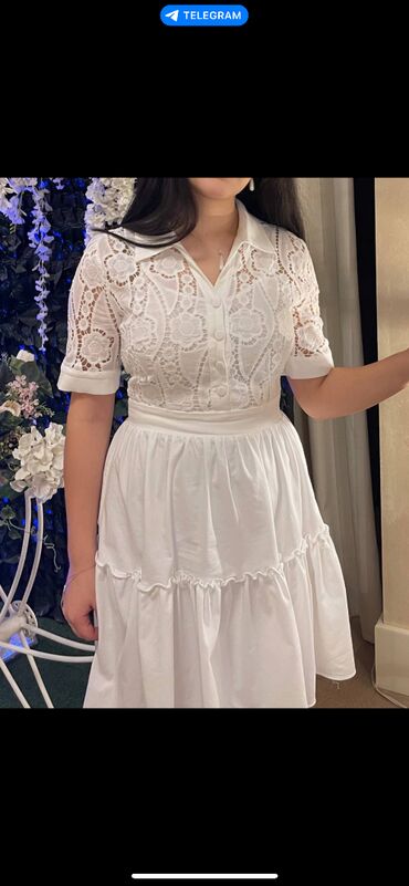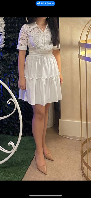 Ağ rəngli elegant qısa don. Kvadrat yaxalı, qalın çiyin askıları ilə. Bel hissəsində dekorativ kəsik detalları var, ətəyi düz kəsimdir. Yay və tədbirlər üçün şıq seçim. Razmer: S. Qiymət: 15 AZN. Ü...