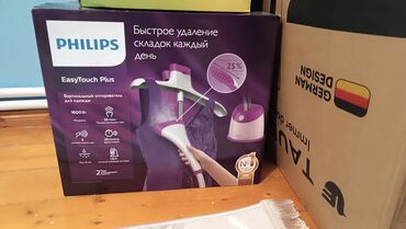 Şəkildə gördüyünüz qutu PHILIPS markasına aid EasyTouch Plus adlı şaquli (vertikal) parıltıverən (отпариватель) üçün qablaşdırmadır. Bu cihaz geyimlərdəki qırışları hər gün sürətli şəkildə aradan qaldırmaq üçün nəzərdə tutulub.