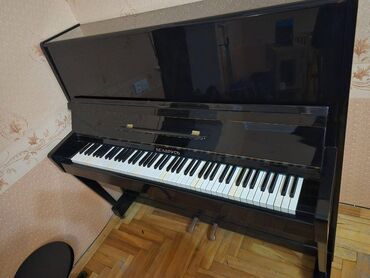 Upright pianino – klassik taxta korpuslu, tünd qəhvəyi rəngdə. Xüsusiyyətlər: - 88 klavişli klaviatura (ağ-qara tam dəst) - 3 pedal - Yuxarıdan qapaqlı, ön paneli açılıb-bağlanan konstruksiya - Pa...