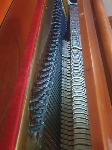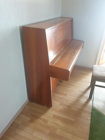 Upright pianino – “Ukraina” markası - Korpus: qəhvəyi, cilalı taxta, dekorativ oyma xətləri ilə klassik dizayn - Klaviatura: 88 klaviş (ağ-qara), tam ölçülü - Pedallar: 2 pedal - Ölçü tipi: dik pi...