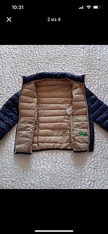 United Colors of Benetton firmasının tünd göy rəngdə, yüngül, şişmə gödəkcəsi. S ölçüsündədir, amma 6-7 yaşlı uşaqlara uyğundur. İç hissəsi bej rəngdədir.