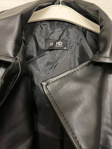 Şəhər üslubuna uyğun, həm gündəlik, həm də daha iddialı kombinlər üçün ideal qara biker gödəkçə. Marka etiketində “HD Tekstil – M” göstərilib.