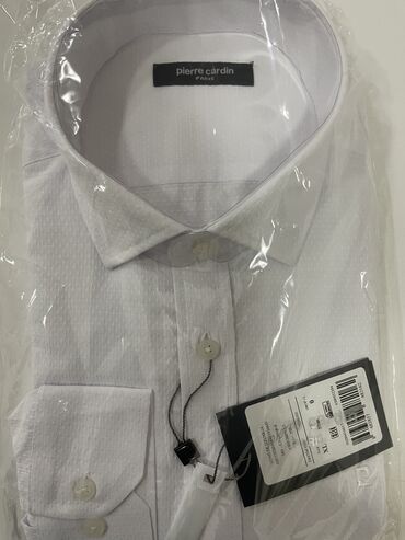 Pierre Cardin kişi köynəyi - Rəng: ağ - Model: klassik, uzunqol - Yaka: sərt klassik yaka - Manjet: düyməli - Material: hamar, incə toxumalı parça (etiketli) - Dizayn: ön hissədə Pierre Cardin loq...