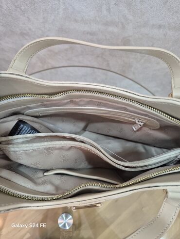 Bej rəngli qadın çantası – çoxfunksiyalı model - Material: yumşaq teksturalı ekodəri (dəri görünümlü), iç hissə parça astarlı - Rəng: açıq bej - Dizayn: üstdə əl tutacağı, ön hissədə şarnirlərlə b...