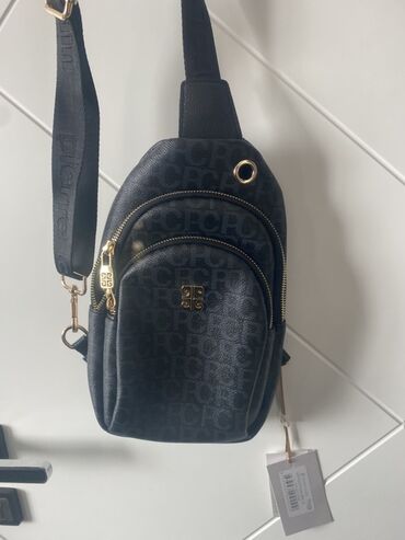 - Dizayn: ön hissədə brend loqosu, üst hissədə metal halqa detalı