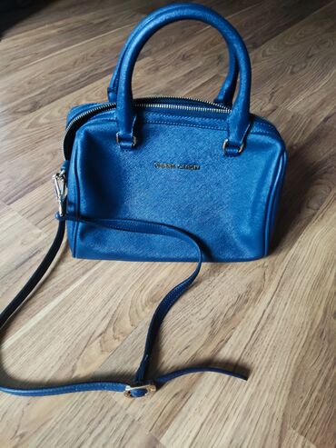 Michael Kors qadın çantası - Rəng: tünd göy (navy) - Material: yumşaq teksturalı süet effektli səth və dəri detallar - Furnitura: qızılı rəngli halqalar, karabin və MK medalion asqısı - Dizayn: ön...