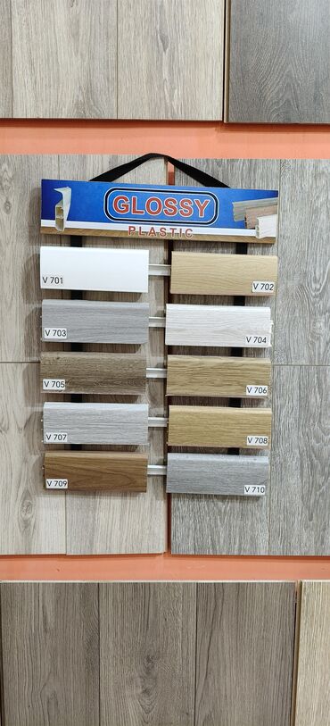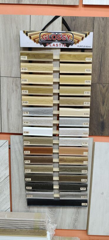 MDF və plastik plintus (döşəmə süpürgəliyi) nümunələri - Müxtəlif ağac teksturalı və rəngli modellər: açıq palıd, tünd valnüt, boz tonlar, ağ-açıq krem və s. - Kodu ilə seçim imkanı: R006, R086, R...