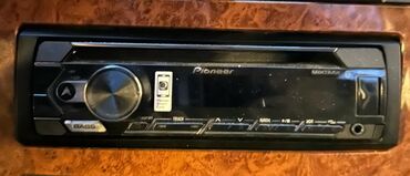 - Pioneer MixtRax ön panel/maqnitola – tək DIN ölçü. Böyük səs səviyyəsi tənzimləyicisi, “BASS” düyməsi, trek idarəetmə düymələri, AUX 3.5 mm giriş. Ön paneldə Pioneer Smart Sync işarəsi.
