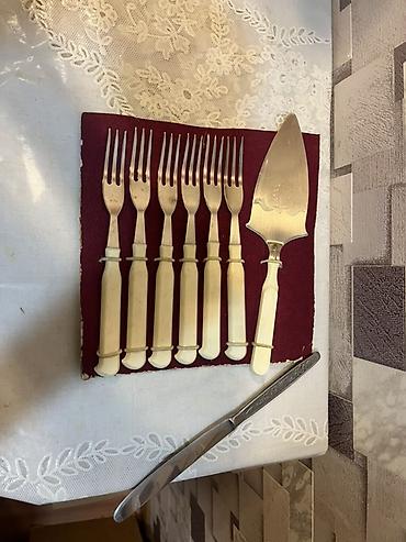 • Antik üslubda bəzəkli süfrə dəsti – metal çəngəl, bıçaq və qaşıqlardan