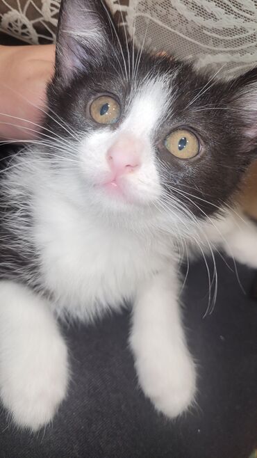 Məhsul: Qara-ağ rəngli balaca pişikв добрые руки, к лотку приучен, кушает самостоятельно Təsvir: - Zərif tuxedo rənglərində (qara-ağ) balaca pişik - Böyük, diqqətli gözlər və uzun bığcıqlar - Üzün...