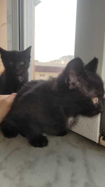 Ev pişik balaları – qara və qara-ağ rənglərdə sahiblenmek isteyen yazsin - Növ: Ev pişiyi (mix) - Rənglər: tam qara; qara-ağ (ağ sinə, pəncələr və üz hissəsində ağ ləkələr) - Yaş qrupu: bala - Göz...