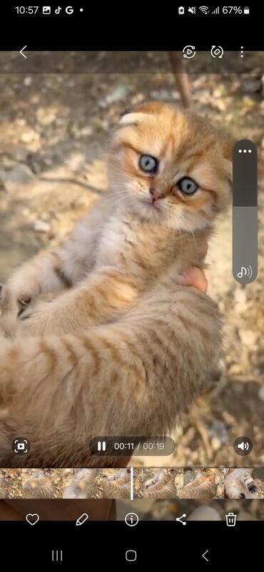Pişik sentyabrın 10 u doğulub. Scottis straight dı. Təmiz cins pişikdi. Dişidi. 4 dənə idilər. 3 ü satılıb. Bidənə bu şirin qalıb. Tükləri bozla qızılıdır. Qum tərbiyəsi var, yemək sərbəst yeyir. ...