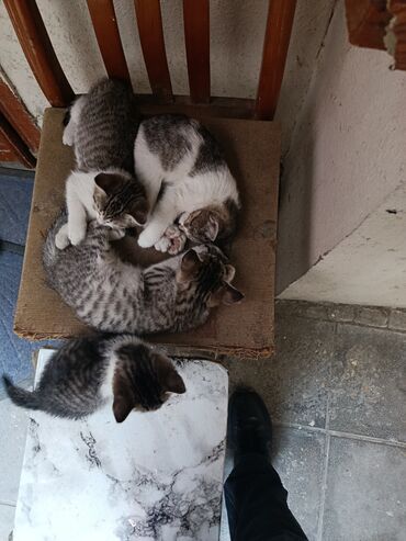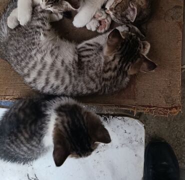 Yarıcins şıltaq və mehriban qız pişik balaları. Qonşumuz tərəfindən həyatlarının ilk həftəsində çölə atılmışdırlar 😢 Anaları - Şotland. Qum tərbiyəsi var. 4-5 aylıq, birə və qurd dərmanı verilib....