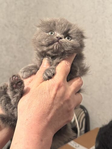 Boz rəngli, tüklü balaca pişik balaları - Rəng: bərk boz (xalçası kimi yumşaq və qalın tüklü) - Gözlər: mavi-boz tonlarda - Qulaqlar: kiçik və dik, başa proporsional - Xüsusiyyətlər: mehriban, quc...