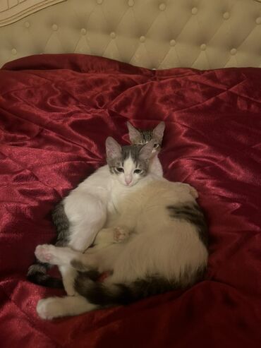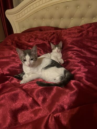 İki balaca pişik – oyunsevər və mehriban - Cins: yerli (tekir və ağ-boz naxışlı) - Yaş: balacalar - Rəng və xüsusiyyətlər: - 1-ci: tünd tekir kürkü, sinə və pəncələrdə ağ ləkələr, iri ifadəli gö...
