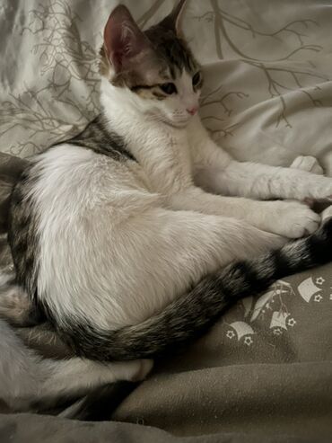 Sevimli pişik balaları - Çox şirin, oyuncaqlarla oynamağı sevən, enerjili və mehriban balalar. - Qısa tüklü, ağ-boz rəng çalarlarında; bəzilərinin kürəyi zolaqlı, sinəsi və pəncələri ağdır. - Ev ş...