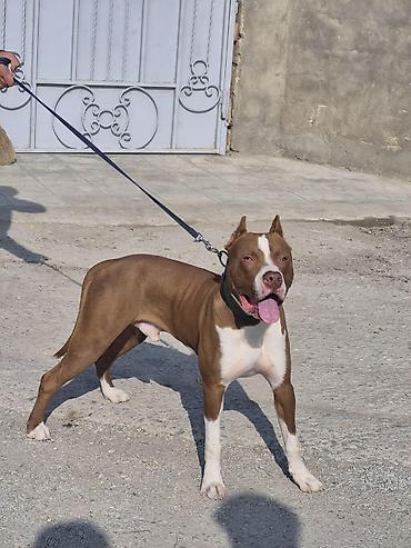Təmiz cinsdir dişidir 2ayı tamam deyil tualet terbiyesi var Amerikan Pitbull Terrier balası - Cins: Amerikan Pitbull Terrier (APBT) - Rəng: şabalıdı/qəhvəyi kürk, sinədə və pəncələrdə ağ ləkələr, ...