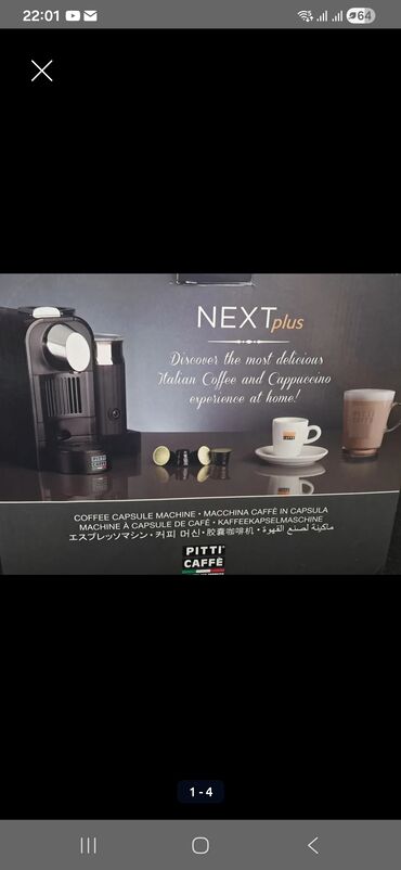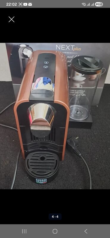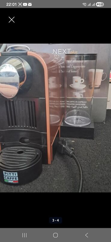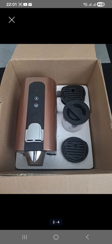 Qutuda: qəhvə aparatı, su çəni, altlıq/damcı qabı aksesuarları (şəkillərdə göründüyü kimi).