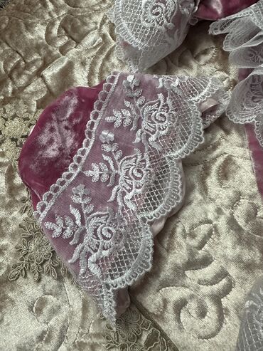 Körpə bükəcəyi/konvert - Rəng: süd ağ/ekru - Material: yumşaq pambıq daxili qat, üst hissədə incə naxışlı krujeva; geniş atlas qurdele ilə bəzədilib - Forma: körpəni rahat bükmək üçün konvert tipl...