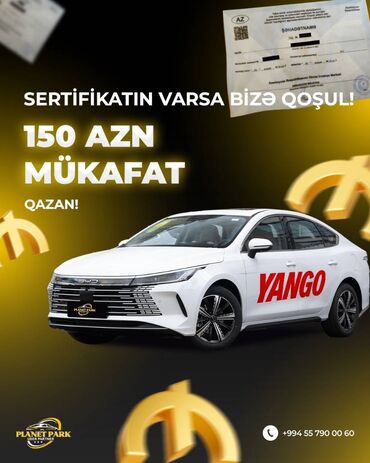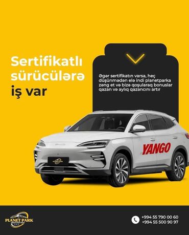 Uber Yango taksi parkina surucu teleb olunur 30 yasdan yuxari,aileli ve yaxsi masin surmeyi bacaran insanlar buyursun zeng etsin SERTIFKATLI SURUCULERE ELAVAE 100 AZN BONUS ! ! !
