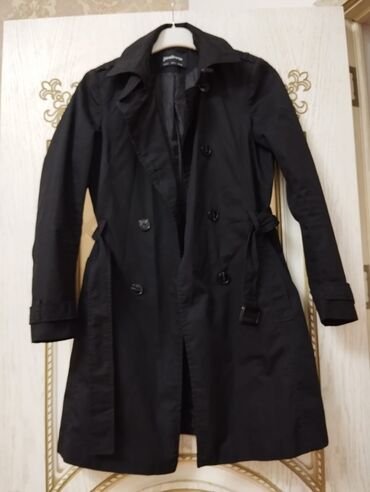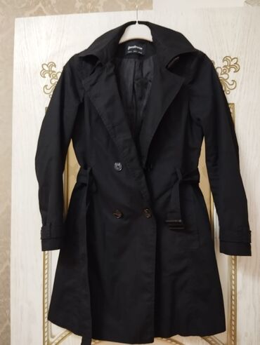 Plaş. Trençkot Cox az geyinilib .teze kimidi. XXs razmerdi. S razmer geyinen xanimada ola bilir. Oversize modeldi .Qara rəngdi . Qiymət 40man