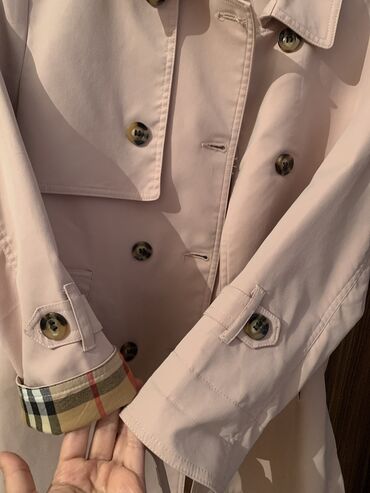 Yağmurluq/trençkot – boz-yaşıl rəngdə, dizdən aşağı uzunluq. - Material: suya davamlı parça; iç hissəsi parlaqlıq verən, nəmə qarşı qoruyucu qatla işlənib. - Dizayn: klassik trençkotu xatırladan d...