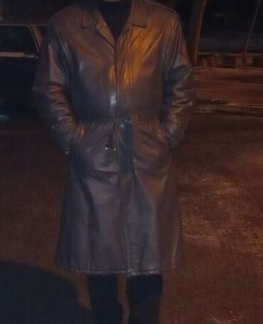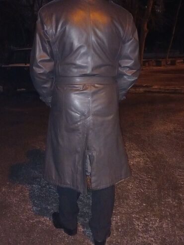 Məhsul: kişi üçün dəridən plaş/kurtka - Rəng: qara - Material: hamar təbii dəri görünüşlü (şəkillərdə parlaq faktura) - Dizayn: klassik düz kəsim, dizdən yuxarı uzunluq - Yaxalıq: yumşaq, tünd rən...