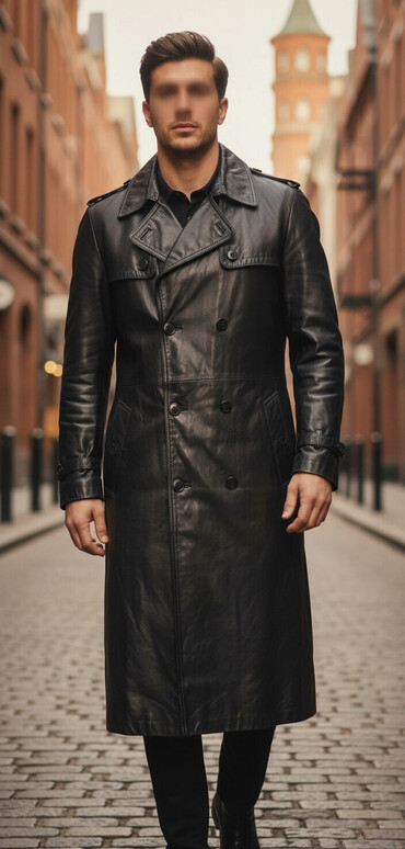 Qara dəridən uzun trençkot -Yenidir geyinilmiyib. - Klassik uzun kəsim, diz altı ölçü - Yumşaq parlaq qara dəri görünüşü, içliyi var - Geniş klassik yaxalıq - Ön tərəfdə qapaqlı geniş bənd, arxada...