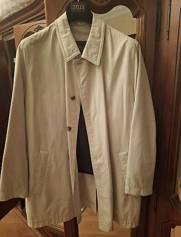 Kişi üçün klassik trench palto - Brend/model: CEKETCH, model 4000 - Rəng: bej/şampan - Ölçü: 50 (etiketdə L) - Material: 100% polyester (kənar və astar) - İstehsal: Türkiyə - Dizayn: düyməli ön ba...