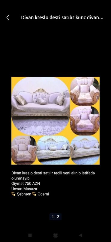 Metall karkaslı masa və divan dəsti - Tərkib: 1 ədəd masa, 2 ədəd ikiyerli divan (bəzi şəkillərdə 2 stul variantı da var). - Karkas: Qara rəngli, gücləndirilmiş metal konstruksiya, “X” formalı day...