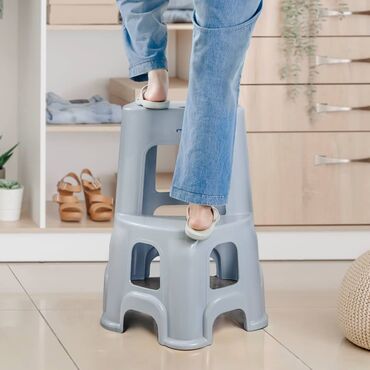 Plastik çoxməqsədli pilləli tabure dəsti - Material: möhkəm, yüngül plastik - Rənglər: açıq boz və krem - Dizayn: iki pilləli konstruksiya – aşağı hissə addım, üst hissə oturacaq/2-ci addım kimi i...