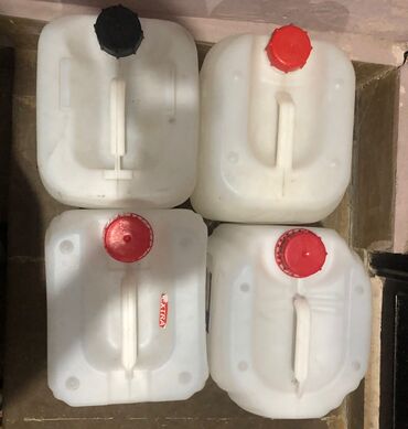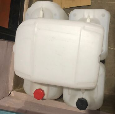 50 litrlik kanistr. 1 böyük və 2 kiçik qapağı var. Kiçik qapaqlardan biri yoxdur (şəkildə görünür)